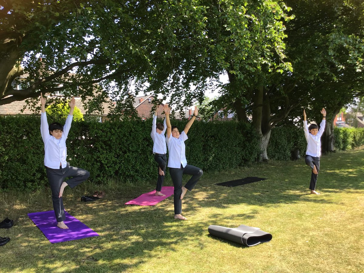 Bolton School Yoga Club. Sun on our faces, soft grass beneath our feet.