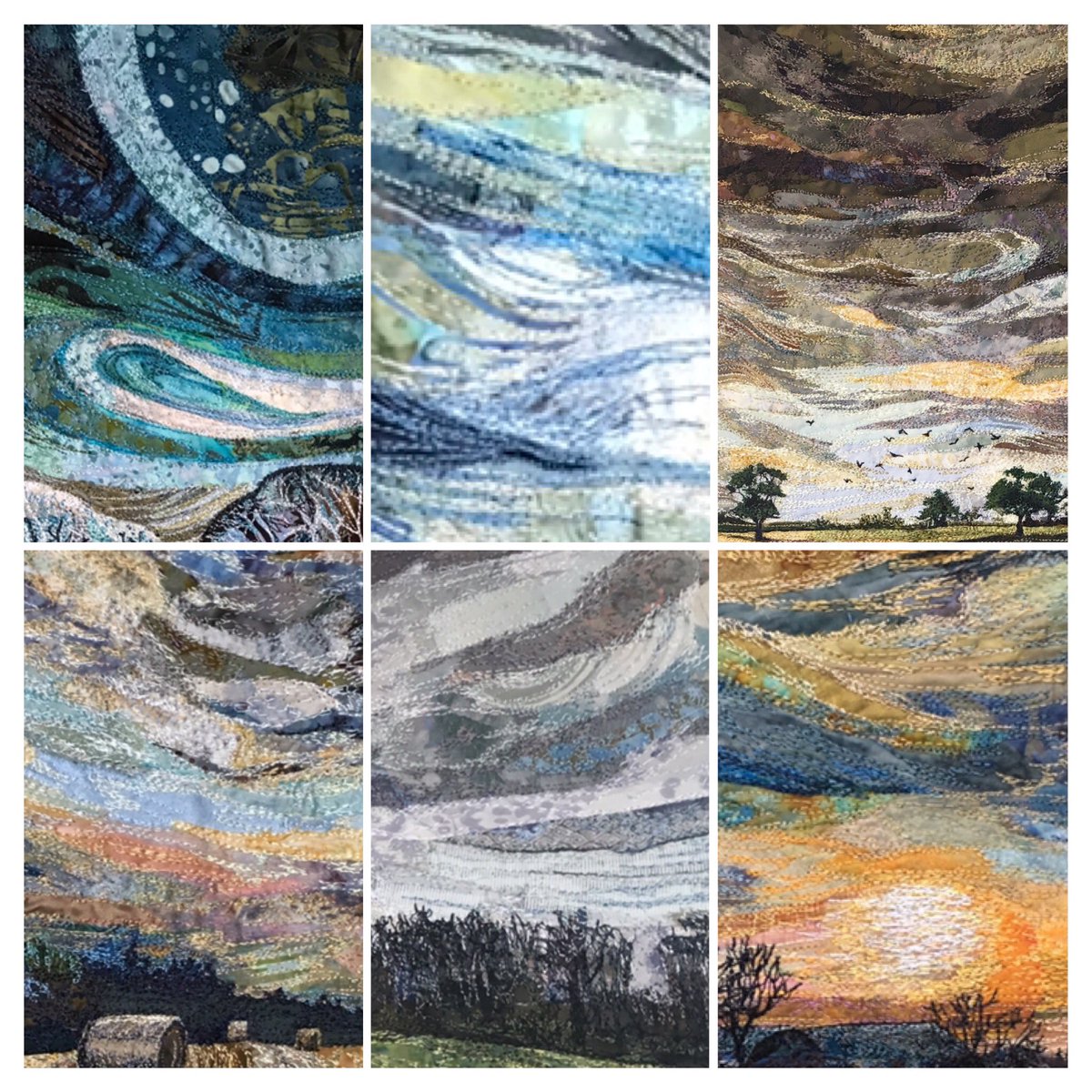 #skies one of my favourite subjects to tackle. Here’s a selection of skies from 2019.#signatureskies#sewsociety#stitchedart#contemporarytextileart#embroideredtextile#textileartistpic.twitter.com/5tbxMp79vK