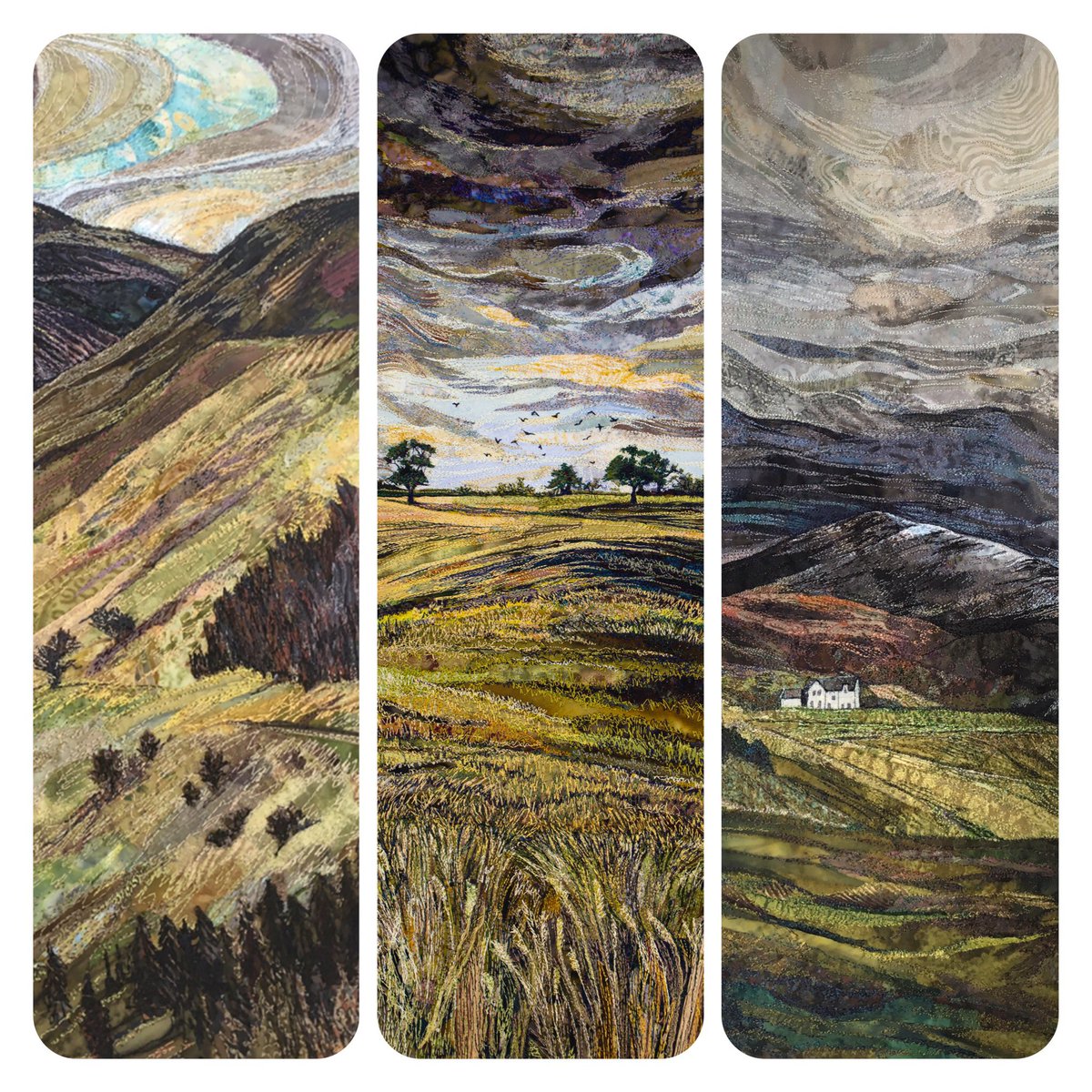Three of my favourite landscape pieces from last year. Using fabrics as paint and stitching as brushstrokes to create textile art.