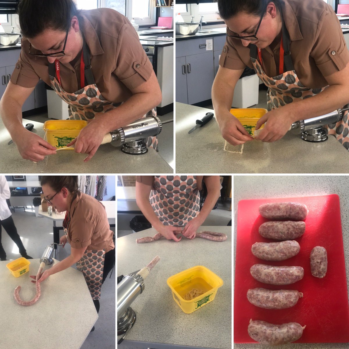@MissEWoodman1 in making our own sausages with meat and skins preparing a few year 11’s for next weeks finial exams! Well done Miss!@TKASATECH#experiences#nextlevel#teaching#cooking pic.twitter.com/LoVTp4xPA4