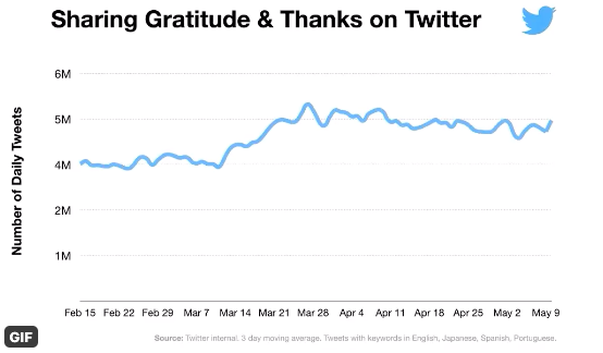 There have been 250m+ tweets since March 15 expressing gratitude.