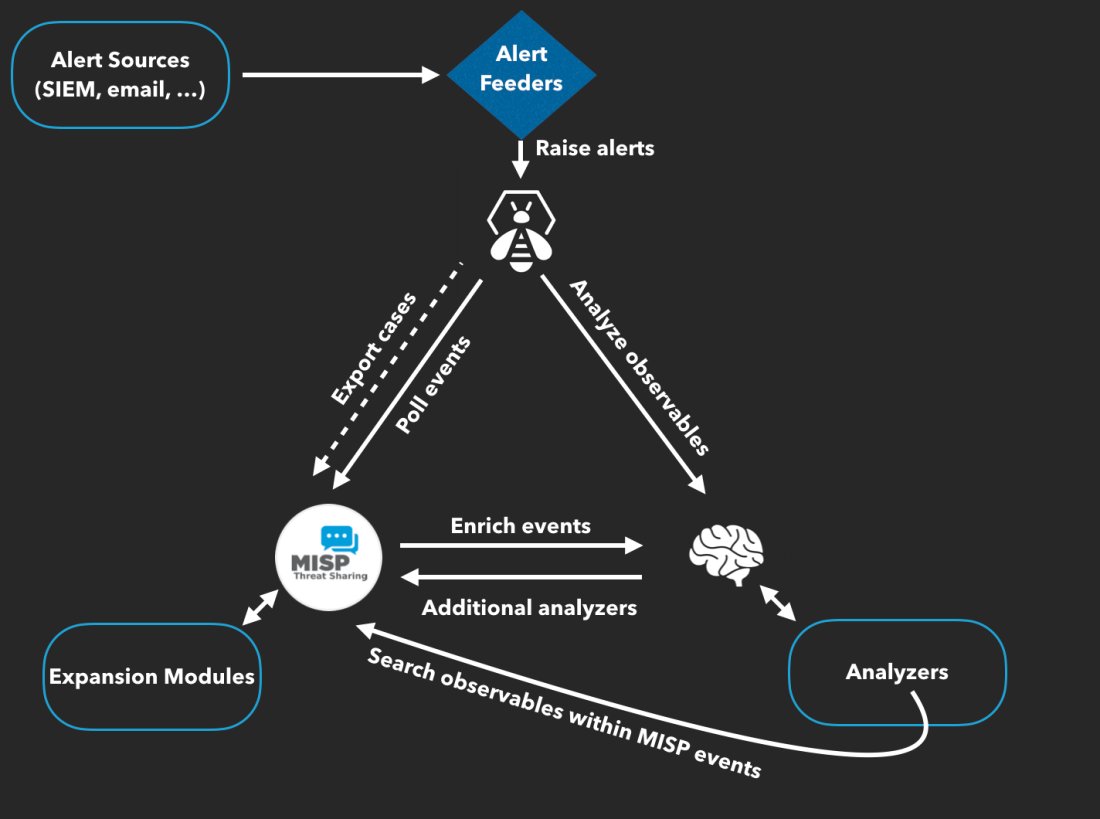 #TheHive,#Cortex and#MISP : How They All Fit Together 1 SIEM : Alert feeders 2 TheHive --MISP : Export Cases / Poll event --Cortex : Analyse obs 3 MISP : Use modules --Cortex : Enrich events 4 Cortex : Analyzers --Misp : Additional analyse / Search obs https://blog.thehive-project.org/2017/06/19/thehive-cortex-and-misp-how-they-all-fit-together/ …pic.twitter.com/dr8gEh3KMN