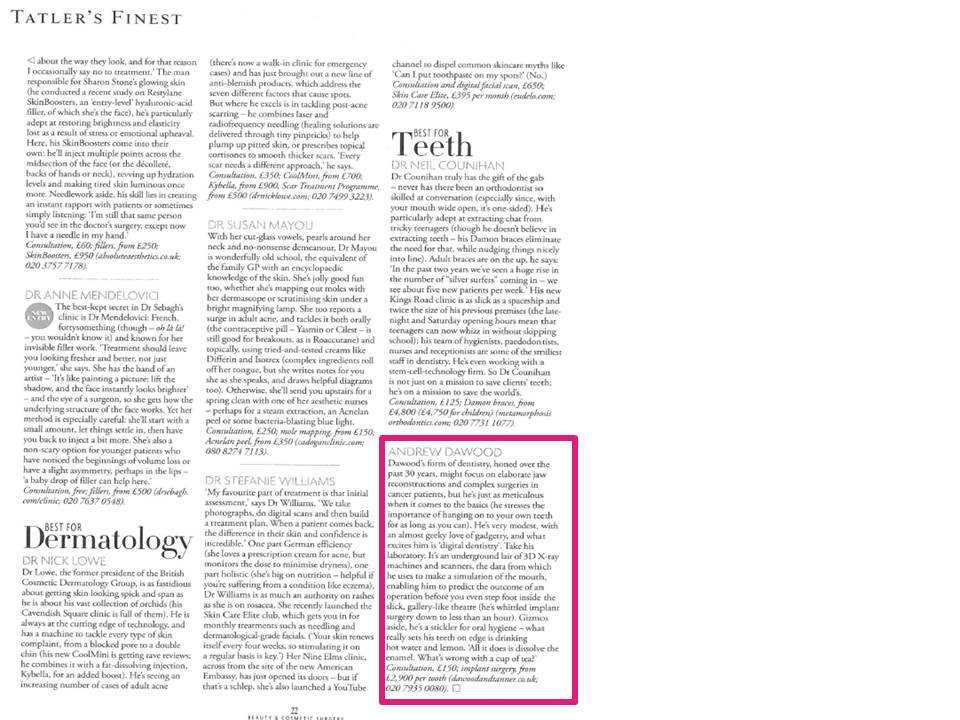 RT TraverseDentist DawoodandTanner: andrewdawood1 features in TatlerUK Beauty & Cosmetic Surgery Guide