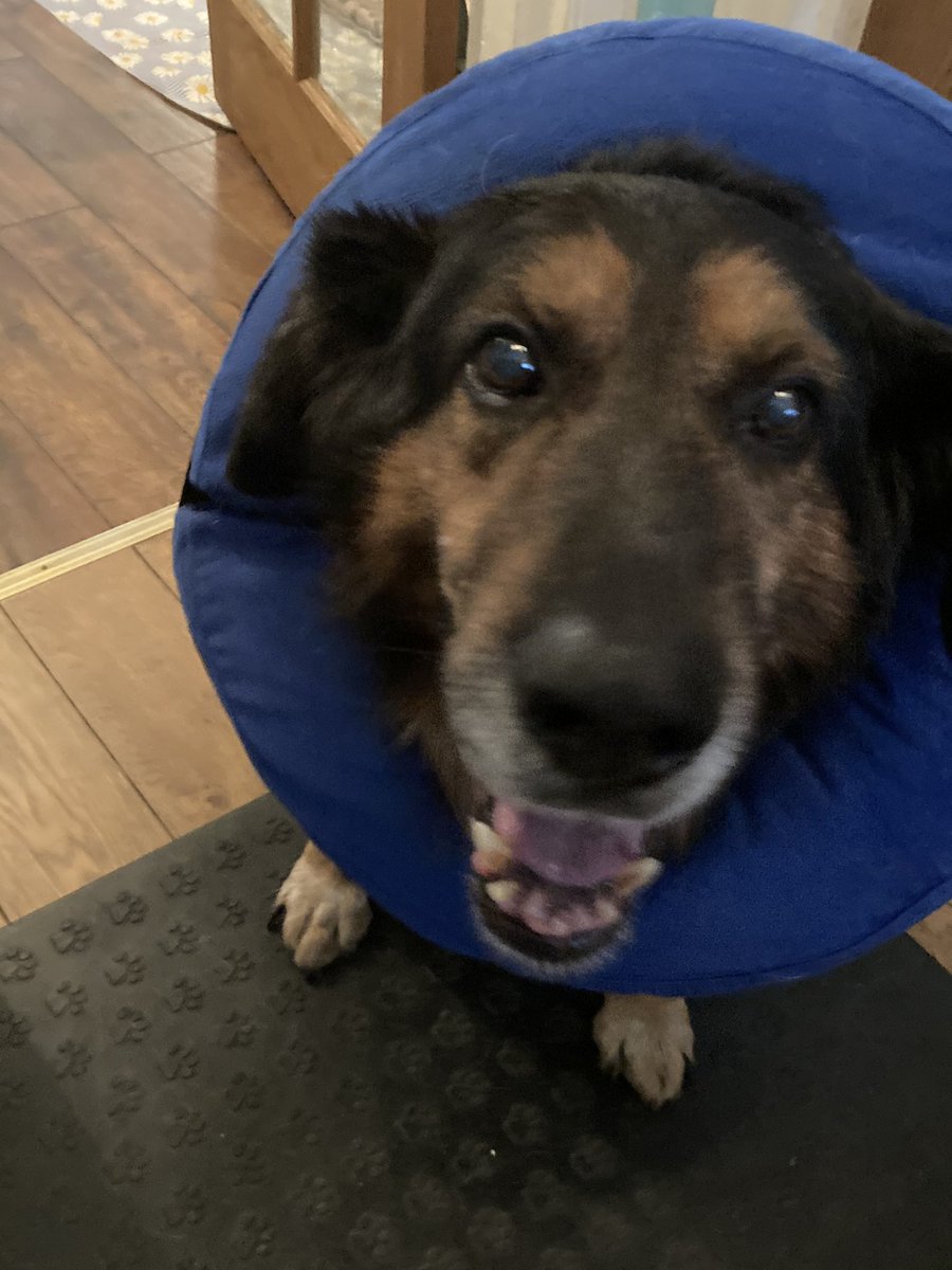 Mum’s taking me to the vets as I’ve chewed another sore patch on my side this morning . Mum’s worried but I still can’t stop smiling #courage#perseverance#NeverGiveUppic.twitter.com/Ex5QW1R58I