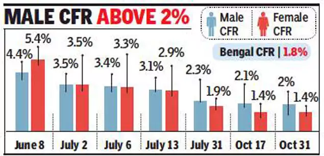 #COVID19 Case Fatality Rate (CFR) in Bengal, initially higher than the male CFR, reduced sharply & stayed below 1.5%. Overall CFR has also dropped to 1.8%. At the current stage of pandemic, preventing mortality is the only goal.@MamataOfficial https://timesofindia.indiatimes.com/city/kolkata/female-cov-fatality-rate-dips-below-1-5-in-bengal/articleshow/78989406.cms …pic.twitter.com/OsnPrDn5ni