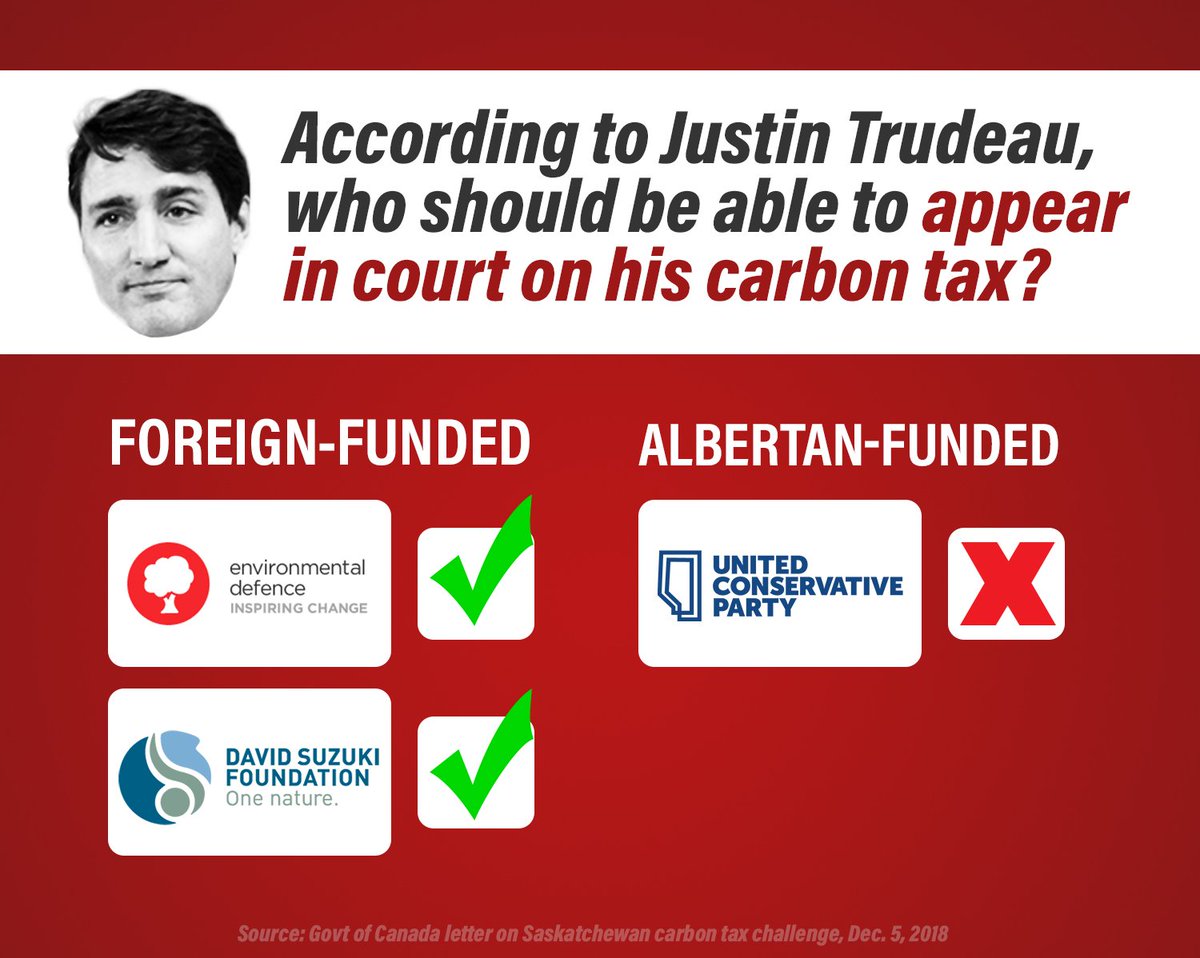 #UCP shouldn't be able to argue against his carbon tax. But he's fine w/foreign-funded groups like Suzuki Foundation & Environmental Defence using Cdn courts. Meanwhile Notley NDP is MIA altogether. https://globalnews.ca/news/4733155/trudeau-government-reject-jason-kenney-carbon-tax-court-fight/ …#ableg#abpoli#cdnpoli#CPC pic.twitter.com/ltlwQlN8nL