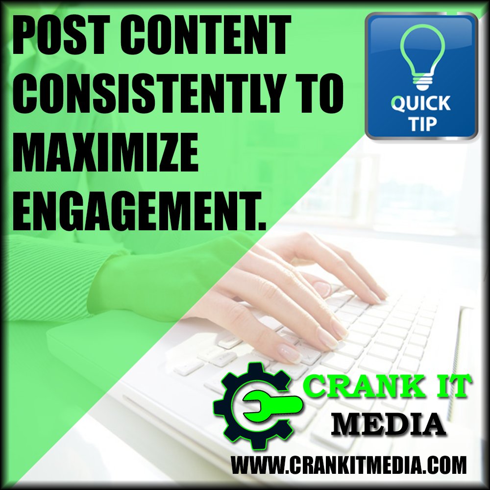 Crank It Media Quick Tip: Keep your posting consistent to maximize your engagement. http://www.crankitmedia.com