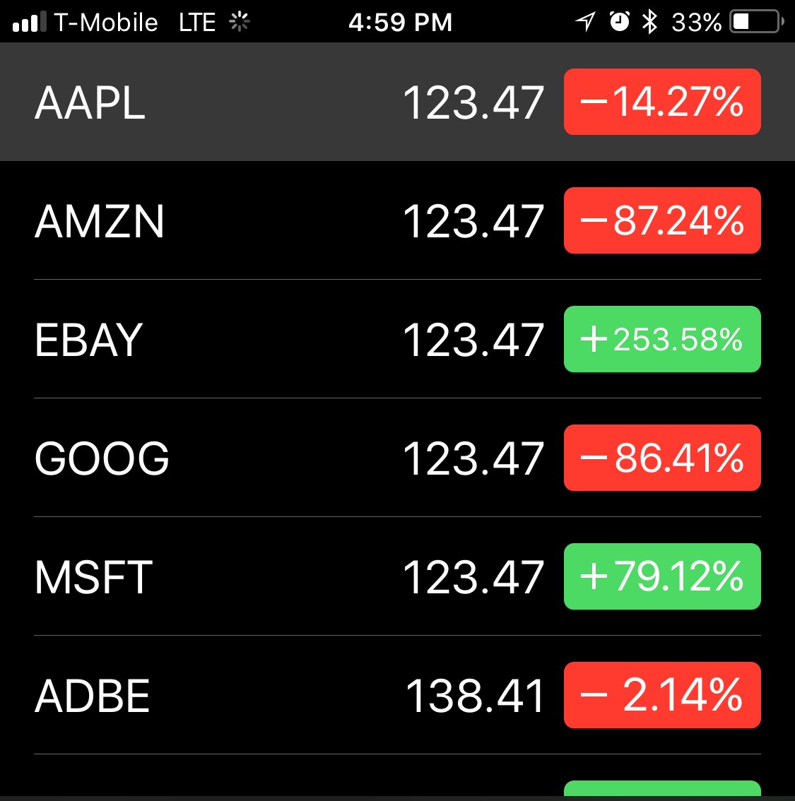 What's going on? AAPL, AMZN, EBAY, GOOG, MSFT, all at $123.47! Is this a massive hack, cyberattack or API glitch?