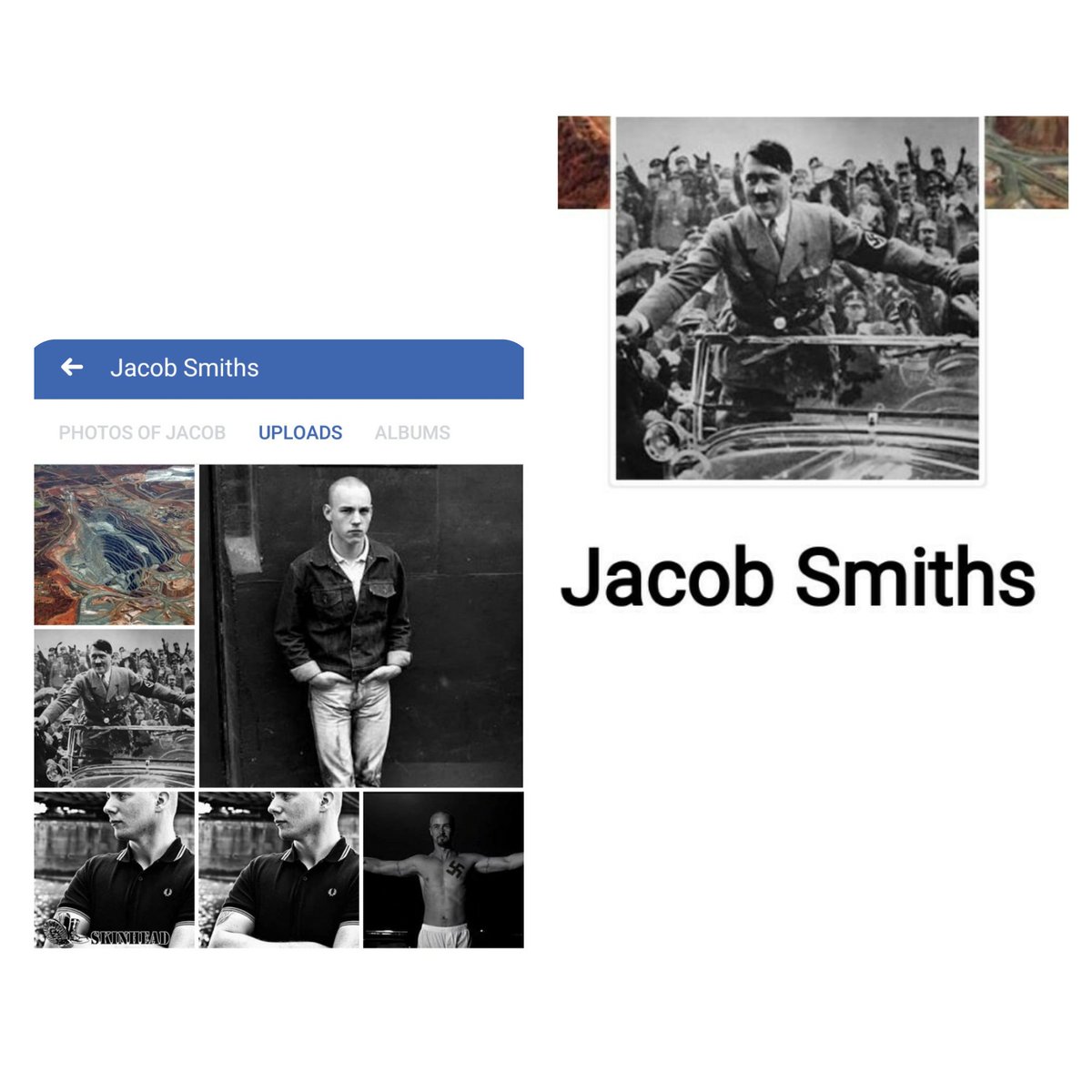 Another one - Jacob Smith is sending us smiley emoji's today! His FB profile pic is Adolf Hitler. He may be out looking for trouble today. STAY ALERT!
