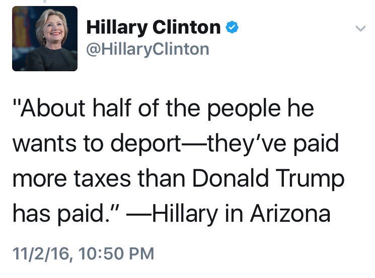 #CrookedHillary said#Trump didn't pay his "fair share" in taxes NEWS FLASH - Trump has paid more in taxes then you have even stole!#MAGApic.twitter.com/FwjHijczvN
