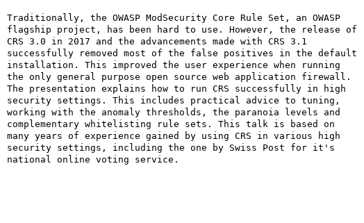 #ModSecurity /@OWASP@CoreRuleSet in High Security Settings has been accepted for@AppSecCali on Jan 23/24!