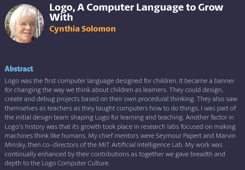 The full ECOOP and CurryOn schedules are available and the early bird registration ends on the 14th of June: https://2019.ecoop.org/attending/Registration … Cynthia Solomon will give a keynote on "Logo, A Computer Language to Grow With" -- http://www.curry-on.org/2019/sessions/logo-a-computer-language-to-grow-with.html …