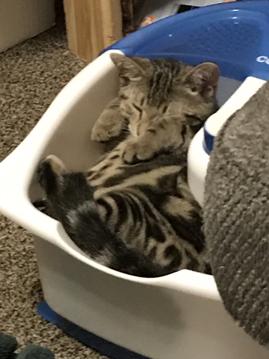 #Zoey has decided that my foot spa would make a comfy bed.#cuteness pic.twitter.com/ld4zWiajTX