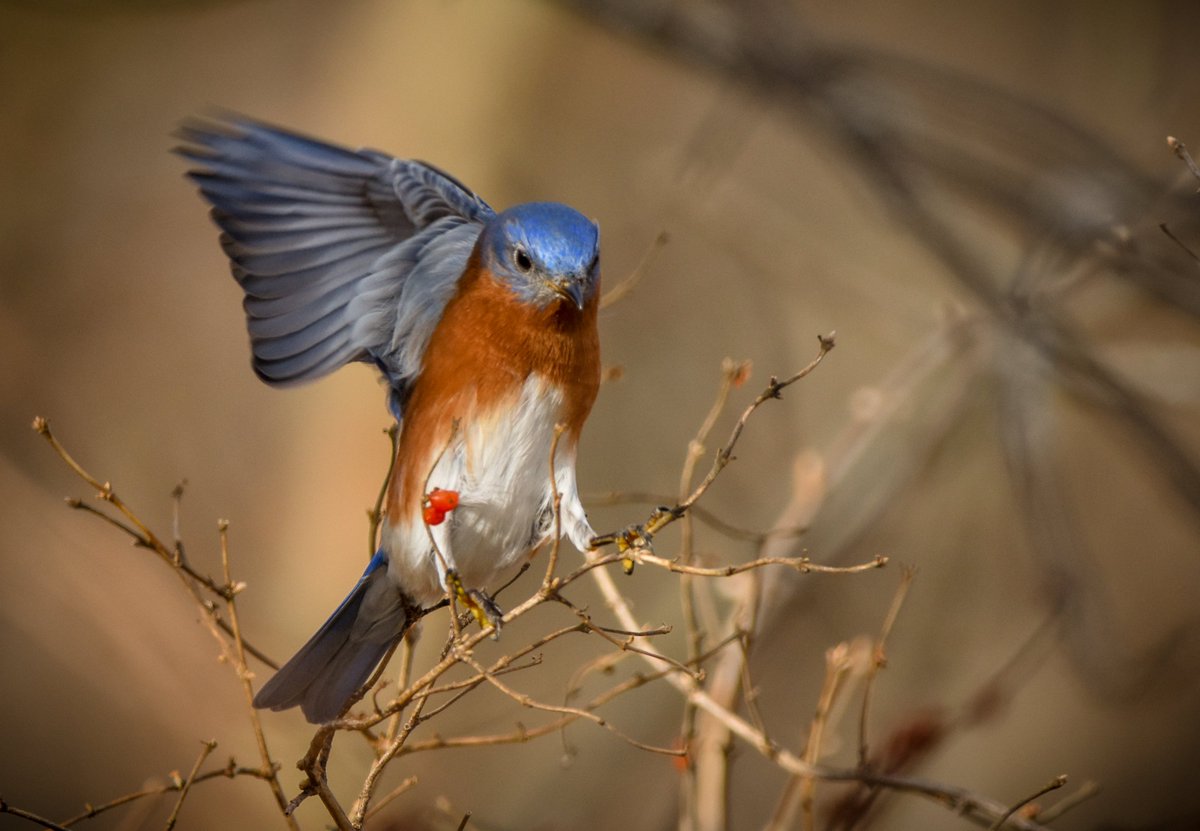 The Eastern Bluebird is the state bird of New York and Missouri.