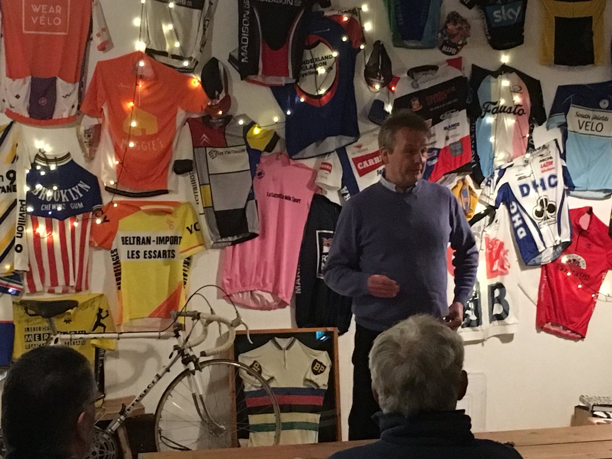 @TrekWilmslow with@ChrisSidwells#cyclinglegends talk. Tom Simpson’s