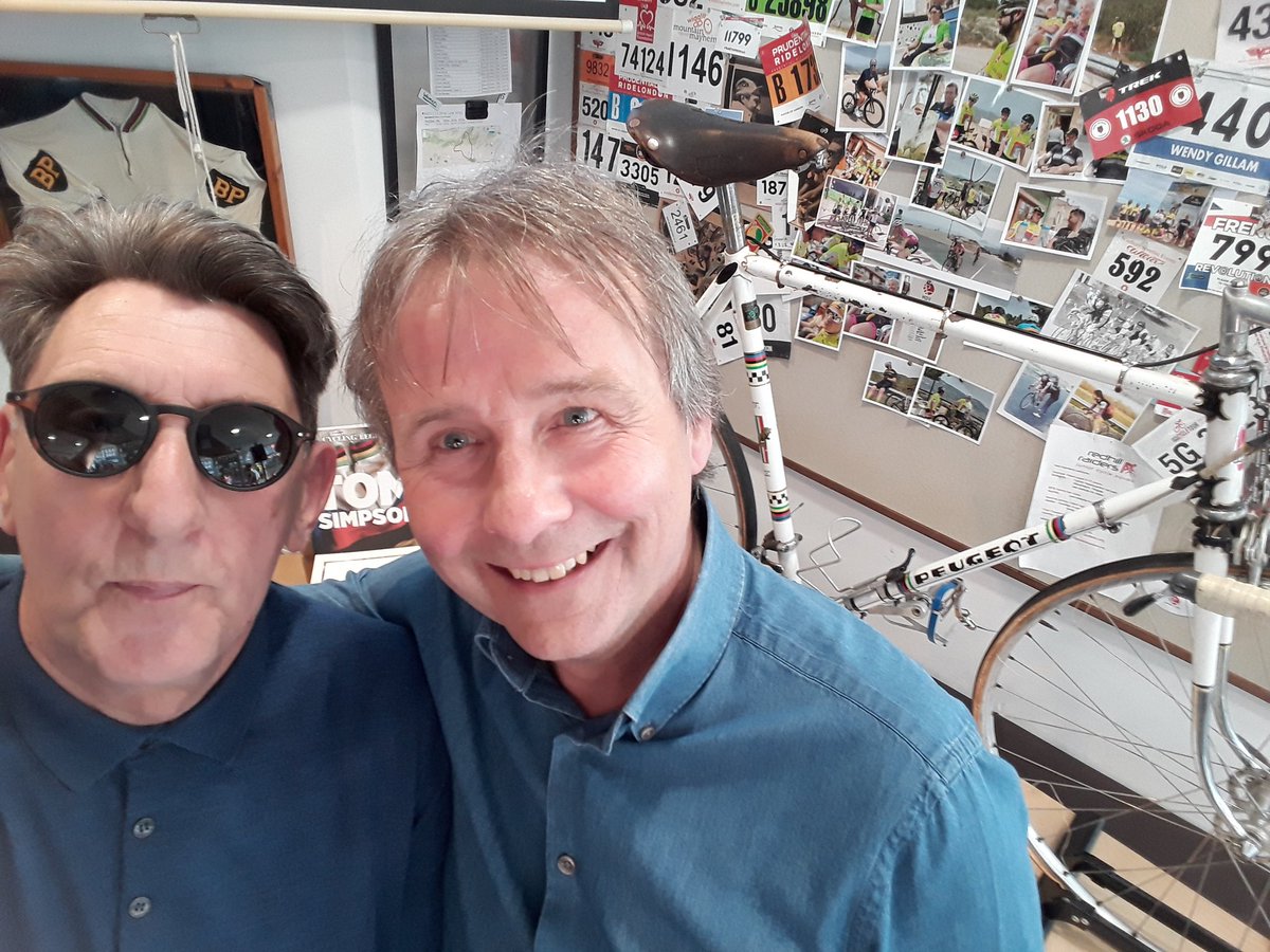 @ChrisSidwells and a quick look at Tom Simpson P-N bike. Now he's off to set up for tonights talk and book sale and signing at@Maisonduvelouk in Reigate. Pop along if you can. Fascinating#cyclinglegends