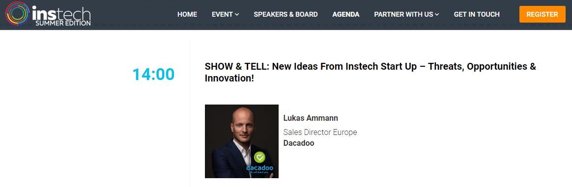 #dacadoo Sales Director Europe Lukas Ammann is speaking tomorrow Wednesday at the#InstechSummer event in London! We are looking forward participating in this conference.@instechclub#club2020#insurtech#instech If you are in London, do not miss our presentation at 2pm,pic.twitter.com/mHjoAyTYLJ