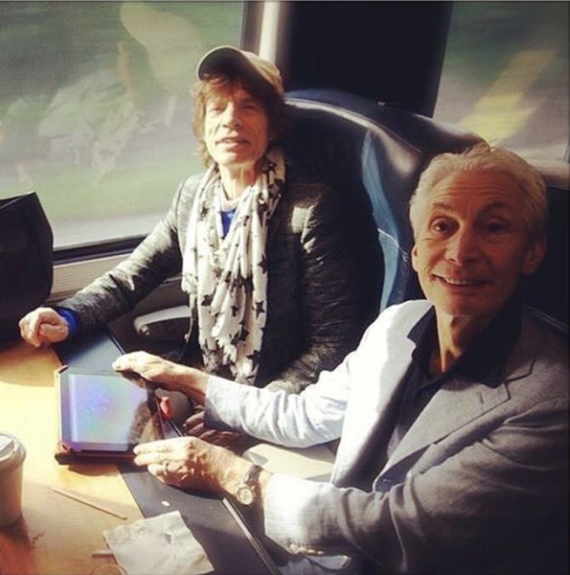 #have#a#great#Wednesday Charlie is wearing an awesome jacket ( golden T&L )#love#it@RollingStones@MickJagger@officialKeef@ronniewood