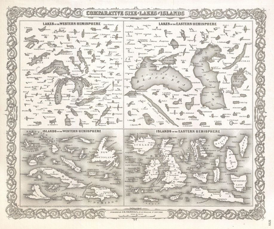 #map /#dataviz from 1855 compares the sizes of lakes and islands. Love it! Source: https://buff.ly/2LayKhY pic.twitter.com/QE8Zle4b0f
