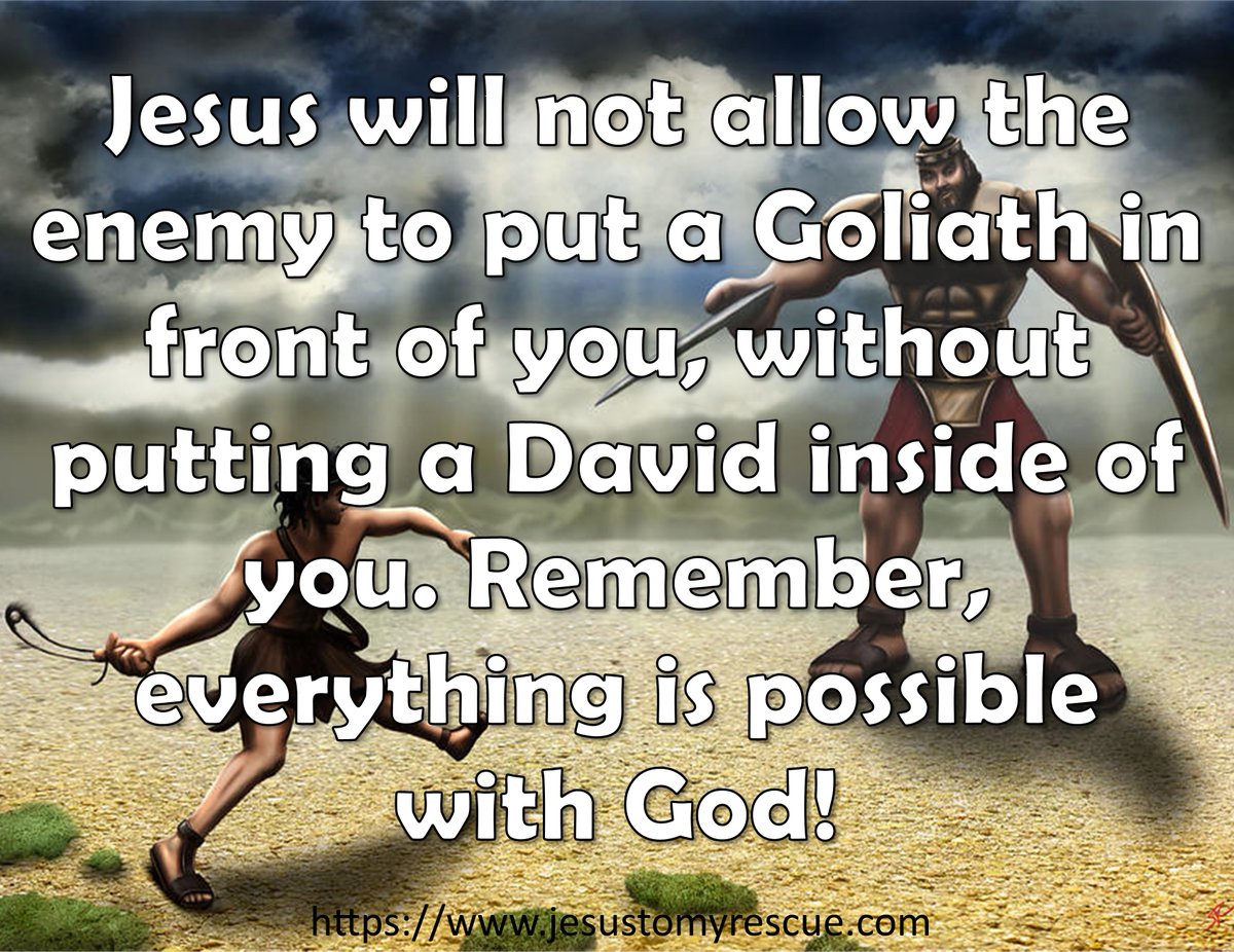 David was a small teenager when he killed the giant goliath by hurling a stone from his sling. . . . . . .
