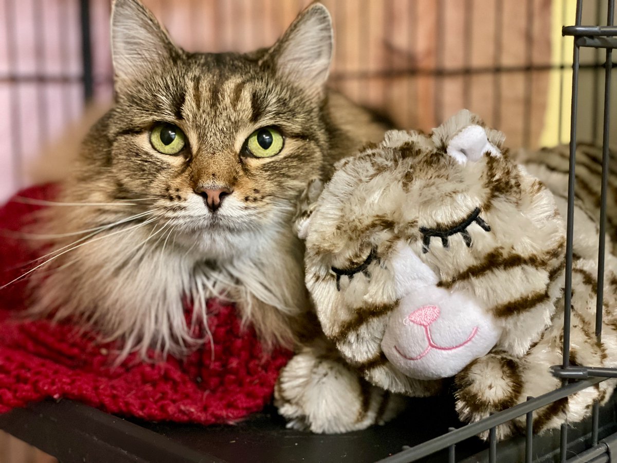 #love w/her new friend (has a calming heartbeat). Thanks SO much to whoever donated from our Chewy wishlist! (we can't view donor names) It even has a little heating pad inside for cold days!#cats#Caturday#Saturday#AdoptDontShop#noVA#DC#VA#MD#Virginia#luvpic.twitter.com/MBtCV0XumP