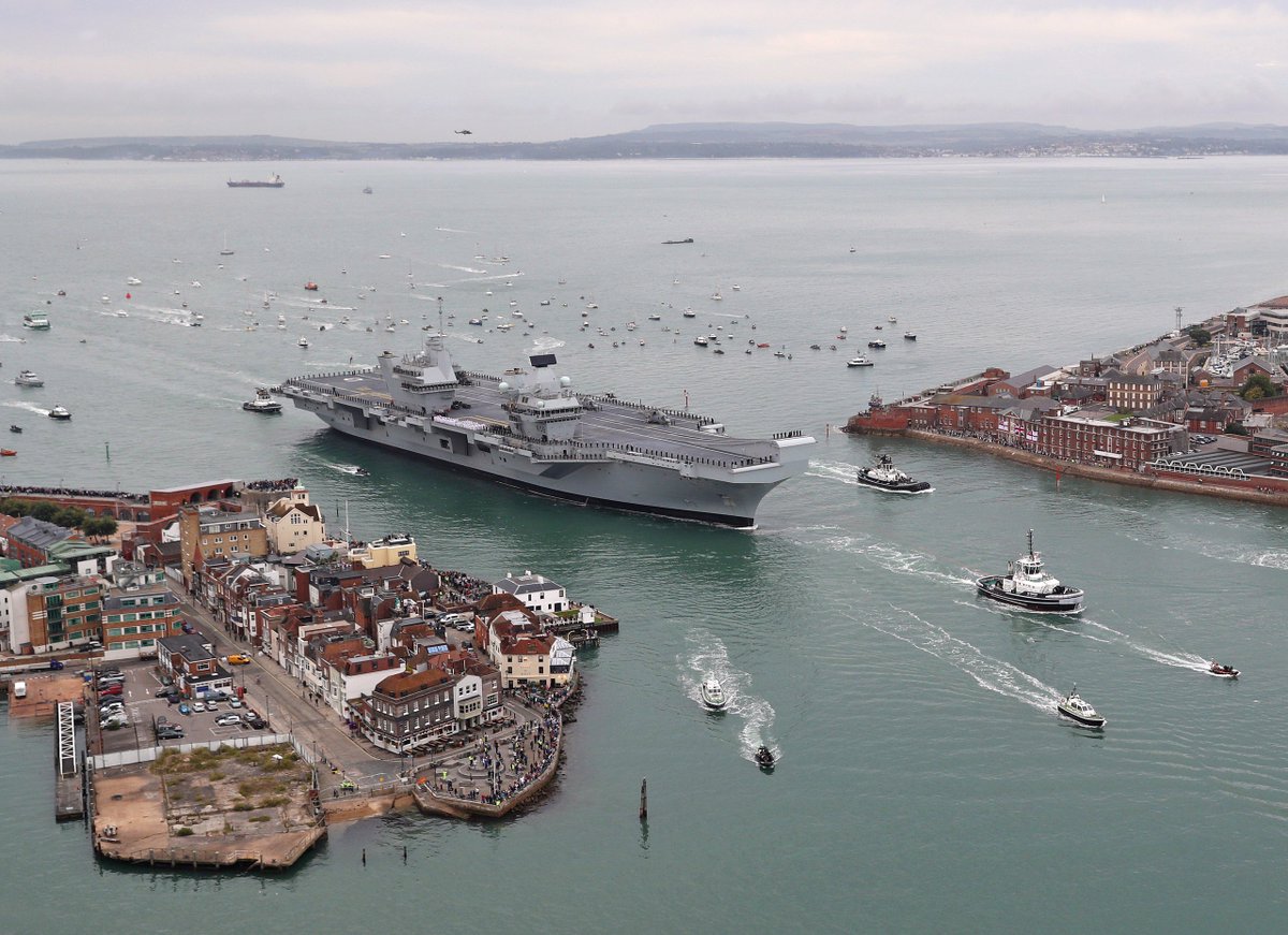 #TBT Ever wondered just how big@HMSQnlz is? This video gives you a real sense of scale, as the@RoyalNavy flagship towers over Portsmouth as she arrived in port#Defence pic.twitter.com/Mextn2uxnI -