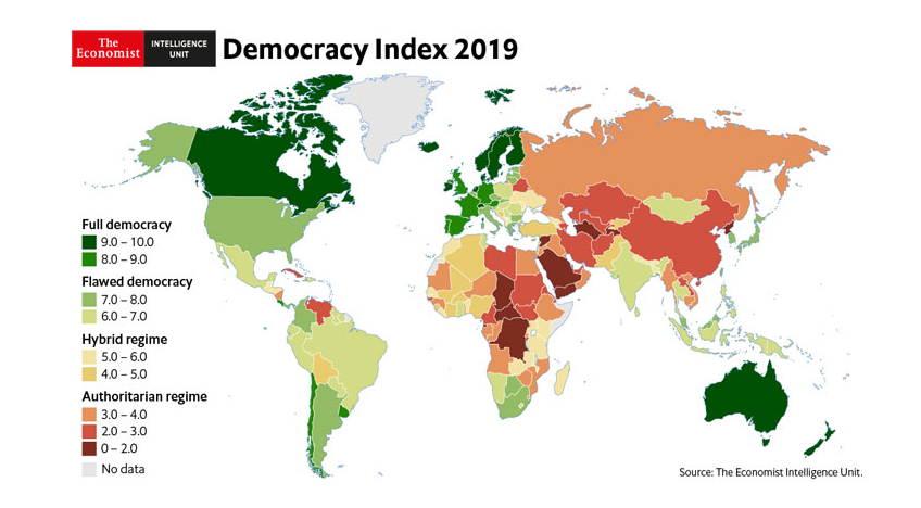 Democracy Index 2019 reveals the worst average global score since The Economist Intelligence Unit first produced the Democracy Index in 2006.