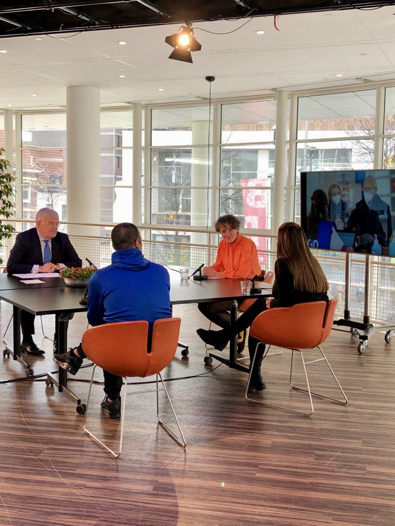 Burgemeester Van Zanen ging vanmiddag in gesprek met inwoners van Den Haag die meewerken aan de campagne