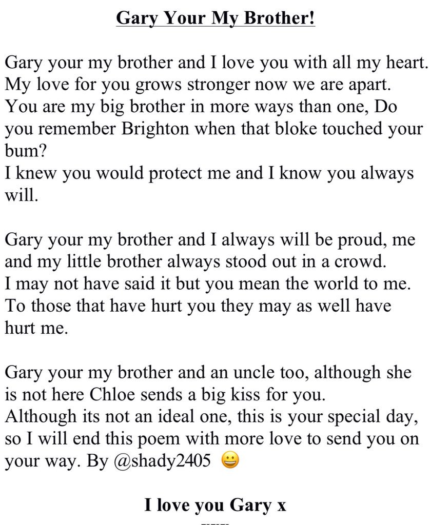 I wrote this Poem for my Brother Gary and read it at his funeral after he took his own life