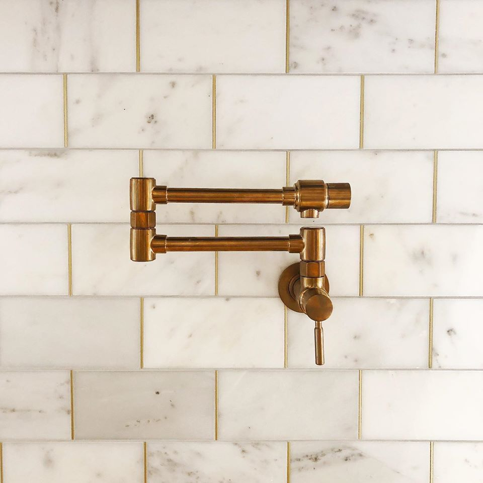 Can we just say — This tile is stunning, check out the BRASS GROUT pieces!