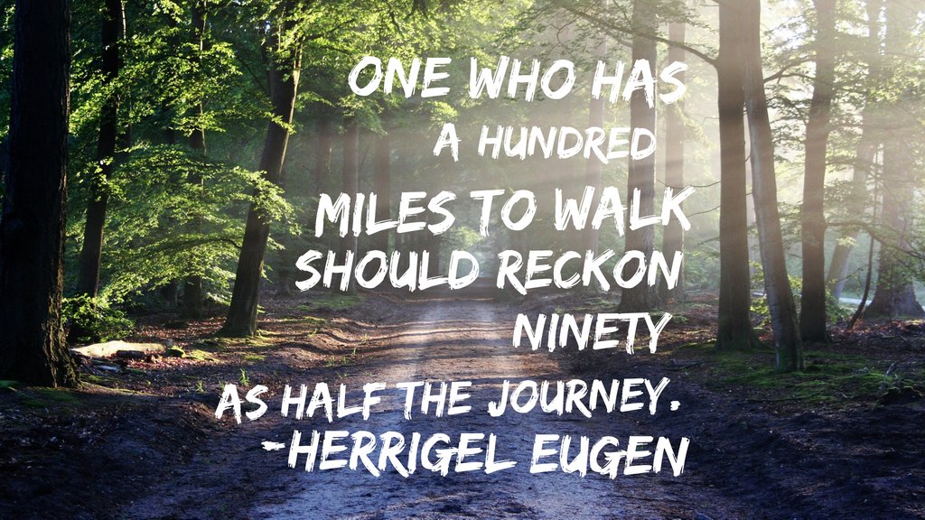 "One who has a hundred miles to walk should reckon ninety as half the journey." Herrigel Eugen, from Zen in the Art of Archery