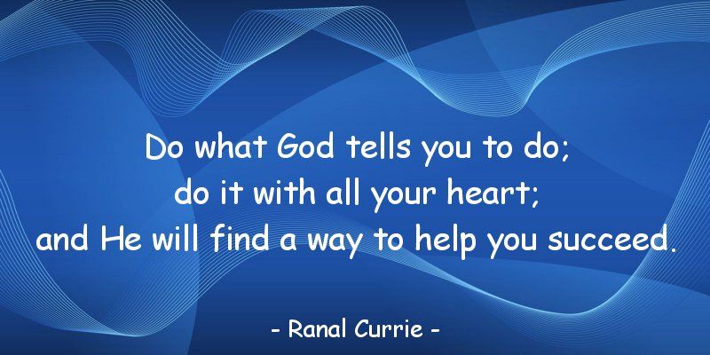 Do what God tells you to do; do it with all your heart; and He will find a way to help you succeed.
