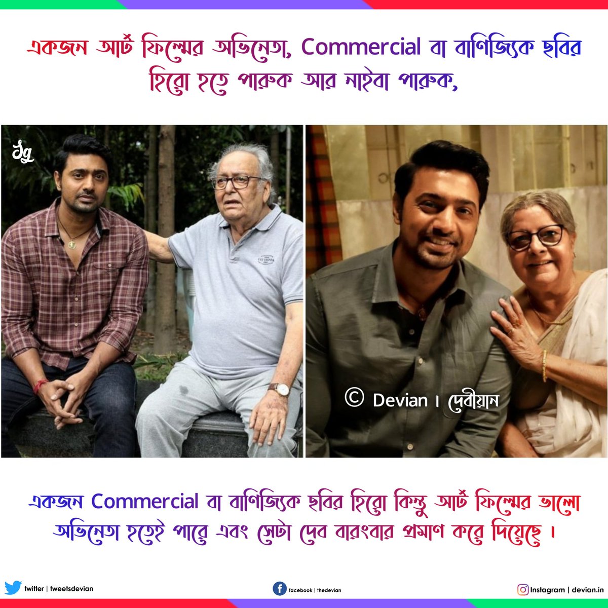সেই বুনোহাঁসের অমল হোক কিংবা সাঁঝবাতির চাঁদু, দেব কিন্তু বরাবর নিজেকে একজন ভালো অভিনেতা হিসাবে প্রমাণ করে ছেড়েছে ।