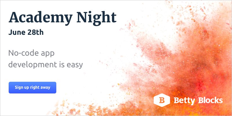 28 juni hosten wij weer een nieuwe Betty Blocks Academy Night! Meer te weten komen over dit platform? Dit is je kans!