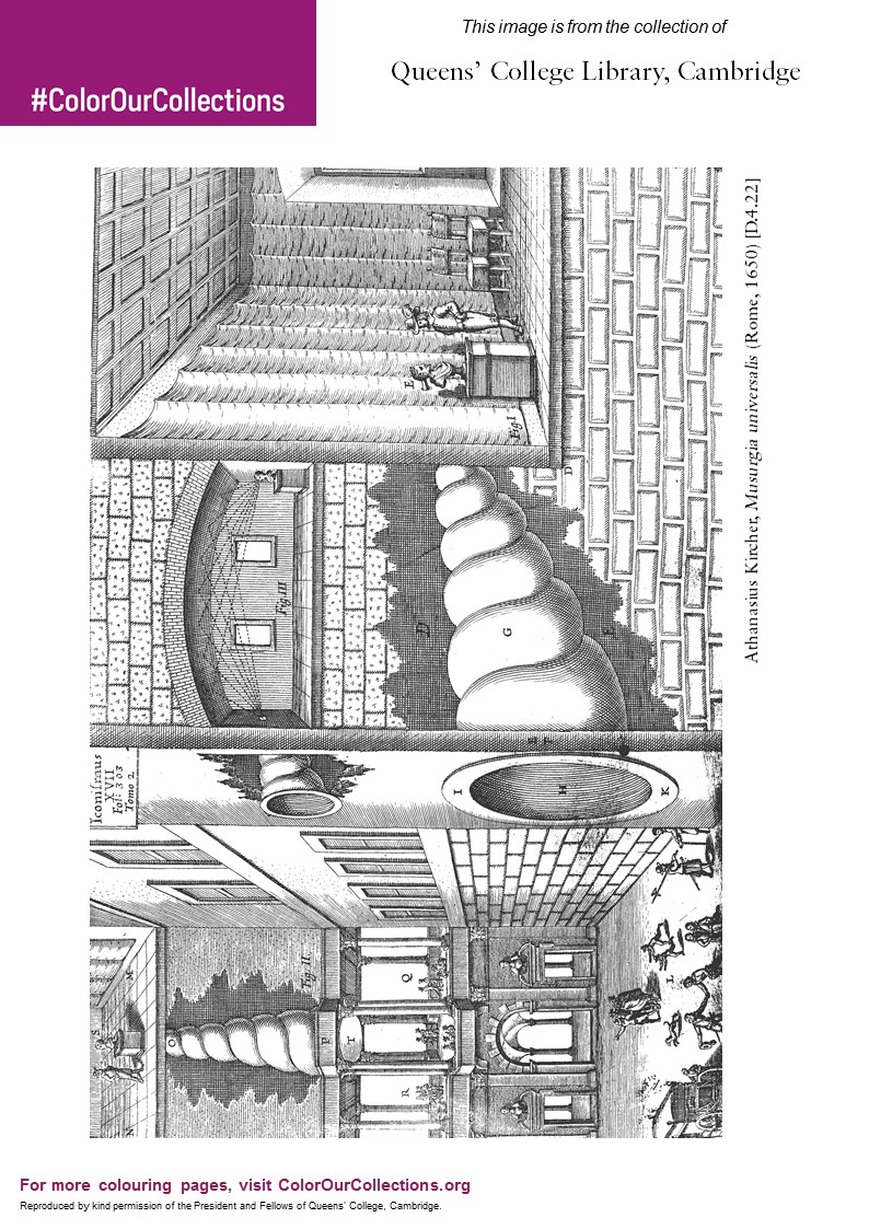 #ColorOurCollections:#engraving from Athanasius Kircher, 𝑀𝑢𝑠𝑢𝑟𝑔𝑖𝑎 𝑢𝑛𝑖𝑣𝑒𝑟𝑠𝑎𝑙𝑖𝑠 (Rome, 1650) [D.4.22] depicting a piazza-listening#device - voices from piazza can be heard from the mouth of the statue in the room above pic.twitter.com/IkDz9Vyoph