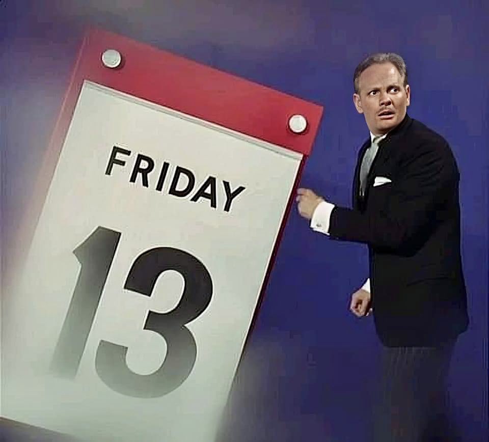 Ich bin nicht abergläubisch und würde an einem *Freitag, den 13.*, in Gegenwart einer schwarzen Katze, unter einer Leiter stehend, mit der linken Hand einen Scheck über 13.000 $ entgegennehmen.