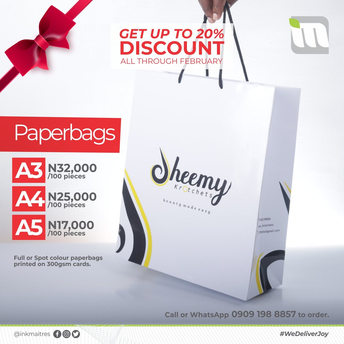 #MonthofLove#Discounts All through#February2020. Call or WhatsApp 09091988857 to order. INKMAITRéS®#WeDeliverJoy Nationwide.pic.twitter.com/ag6dKLrFnh