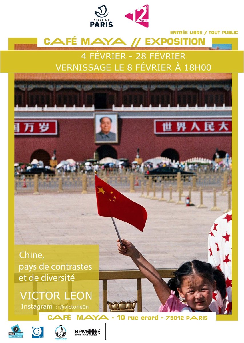 Une nouvelle exposition est installée au @cafemayaparis à partir d'aujourd'hui! Le vernissage sera samedi 8 février à 18h en présence de Victor Léon @victorle0n ! LA CHINE pays des contraste et de diversité
