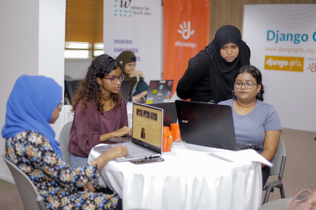 highlights from the Django Girls Male' event with @womenintechmv. 28 women successfully completed the programme. The main aim was to inspire more women to join the tech field by providing a platform to experience the world of programming.