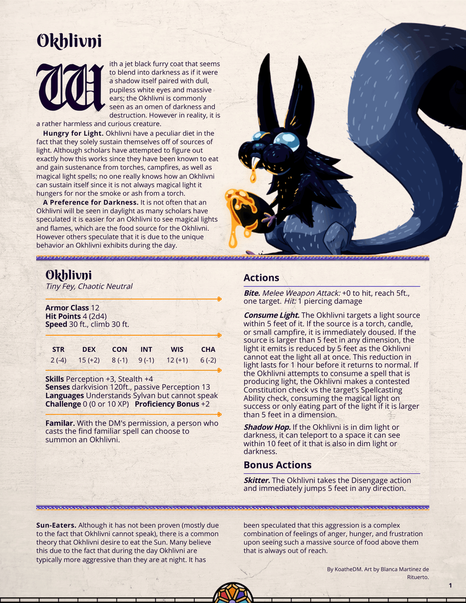 I love this lil' familiar i've made so much!!!! Inspired by Dungeons and Drawing's Skiurid, this take on the black squirrel draws more from Choctaw mythology and they're a mischievous, light-eating bunch that means no real harm!