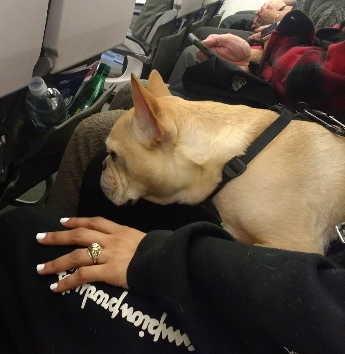 Nearly missed my flight to NYC because I stupidly didn't check my flight details properly and went to the wrong airport! At least I got to sit next to a cute dog