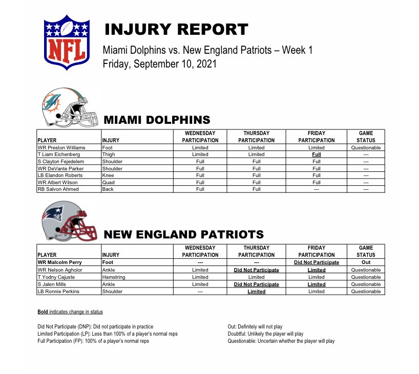 Friday injury report.