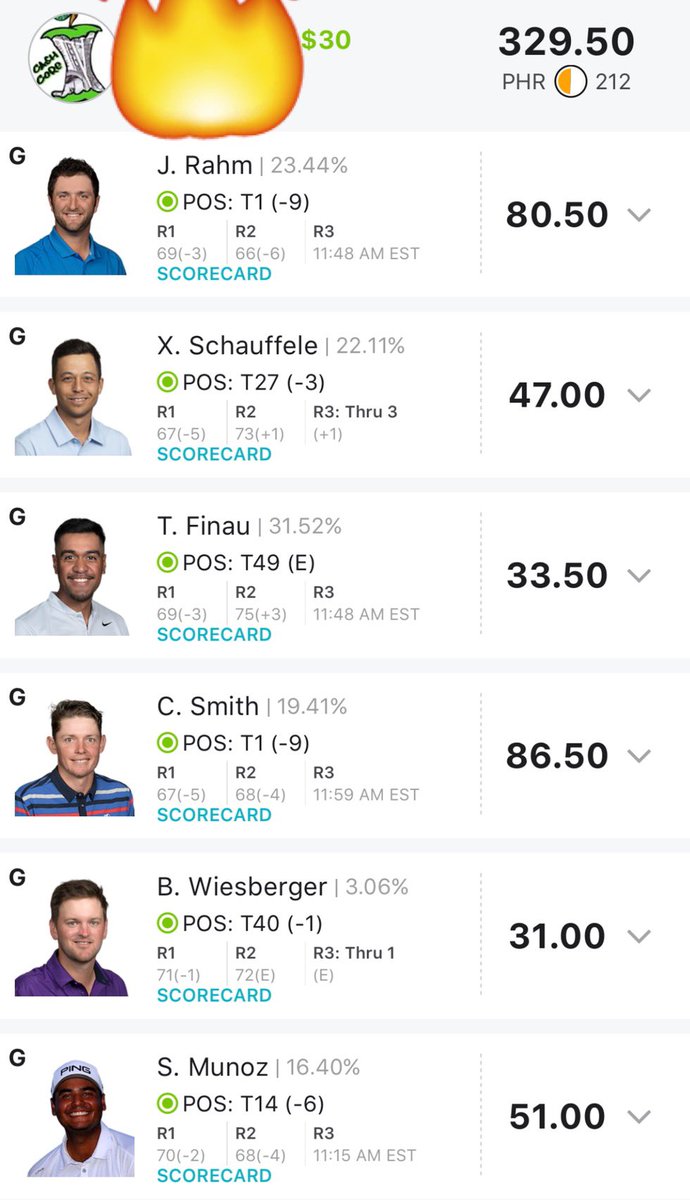 Our Masters Scorecard had 15/19 golfers make the cut! Post your best lineup if you have a good one going!