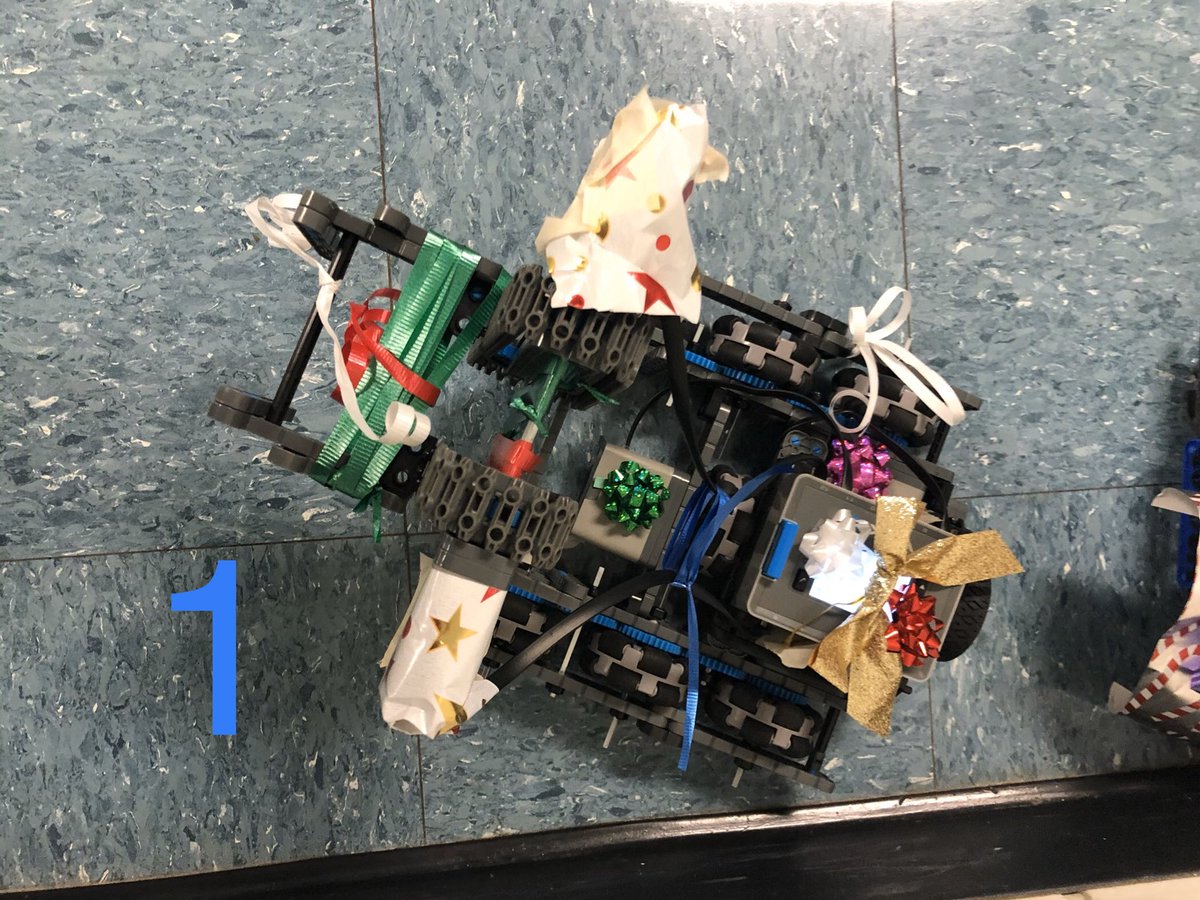 Festive Decorating Contest. They only had 5 minutes. Robots had to be functional with a 5 bow limit & other constraints. Who would you choose as the winner?@SCOREAuburn@PrincipalDMS#drakerobotics#dmspride These kids are competitive!