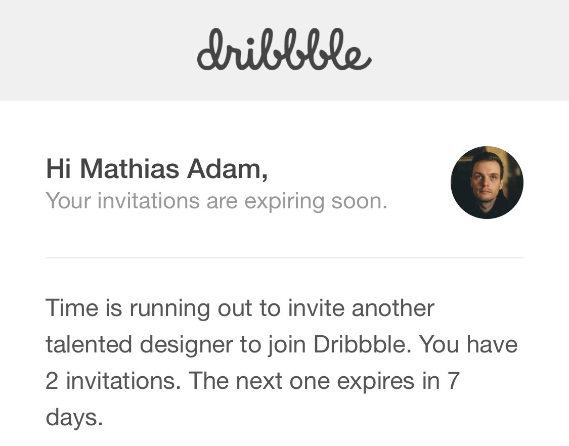 ATTN: I've got two invites waiting to be claimed! Dribbble had an epiphany and decided to start expiring invites so if you're a designer/creative that's not drafted yet, here's your chance! You've got 7 days til they're gone. Good luck!