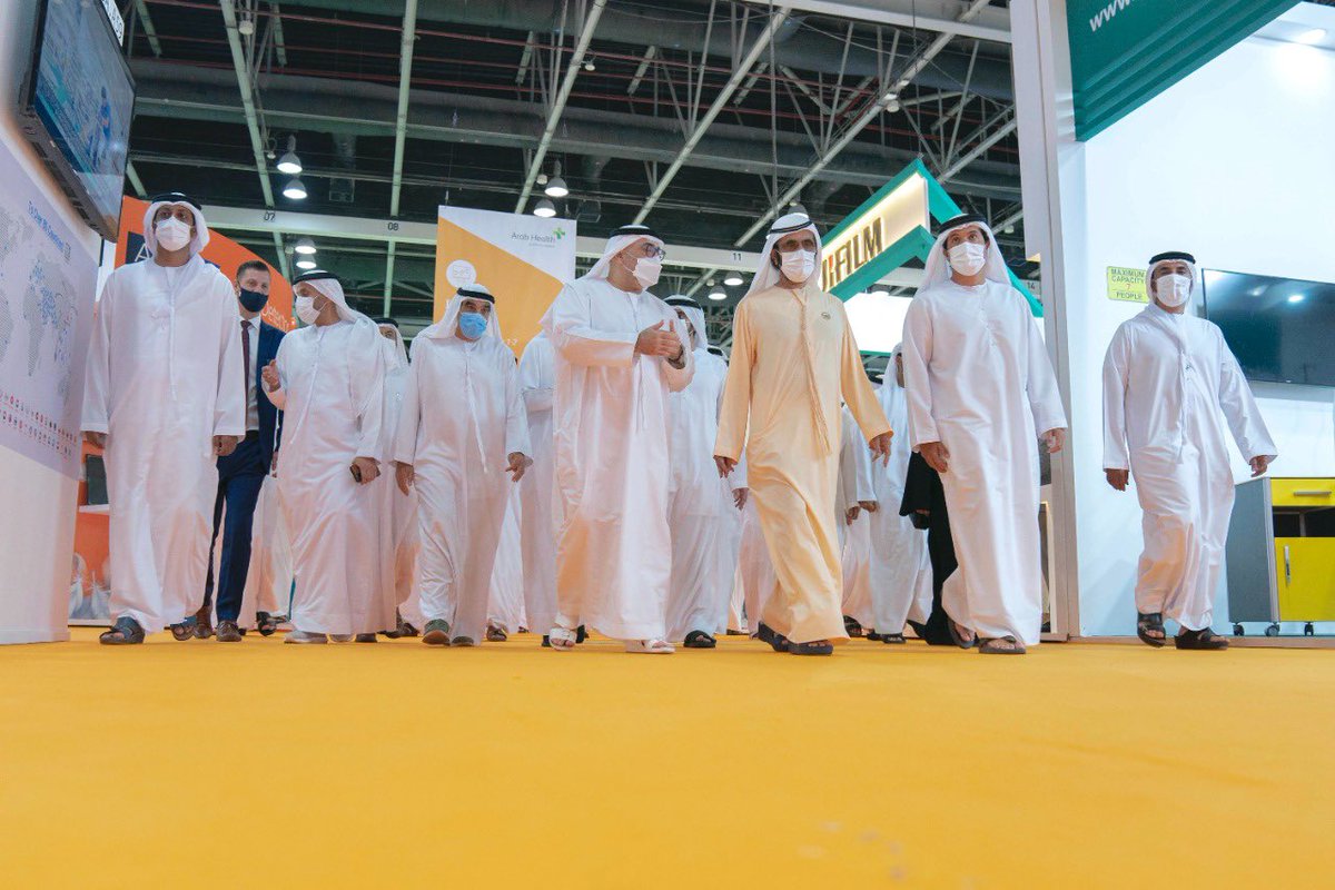 @HHShkMohd, accompanied by@HamdanMohammed,@MaktoumMohammed, and@sheikhmansoor, visits the 46th Arab Health Exhibition at#Dubai World Trade Center. pic.twitter.com/obffHXWcCh