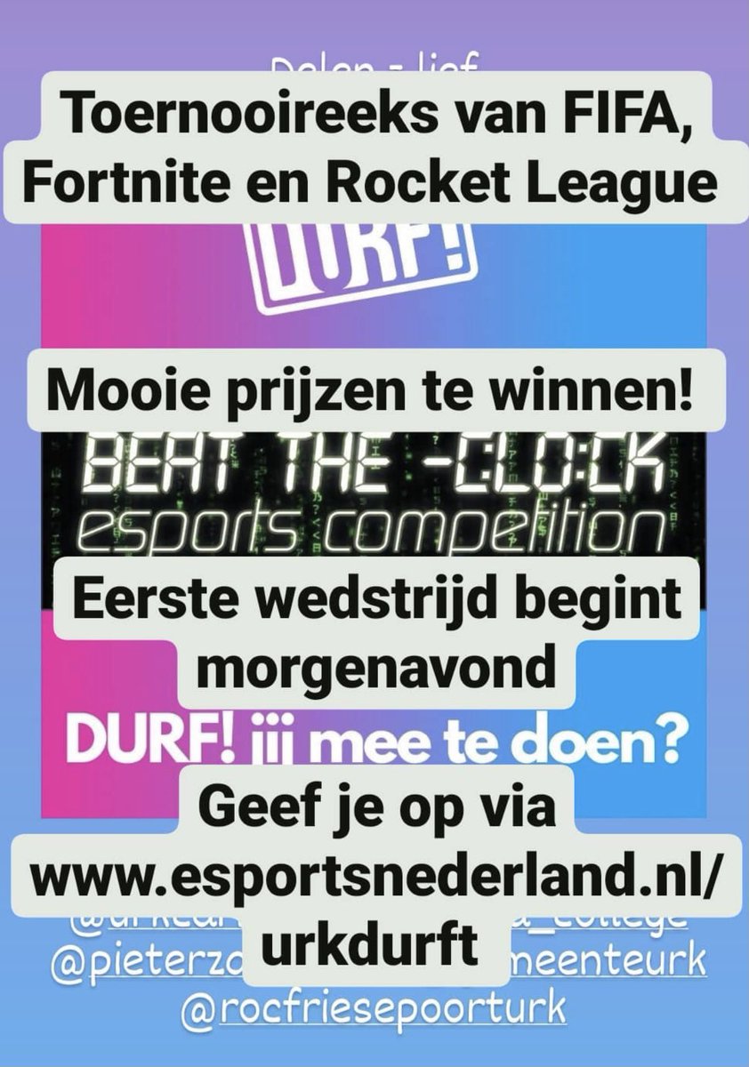 #DURF jij die avondklok te verslaan in een spannend Game- toernooi? Gratis en mooie prijzen. 10 dagen lang. Vanaf 13 jaar. BEAT THE -CLOCK.#urkdurft@CaritasUrkpic.twitter.com/O7jaw362QB