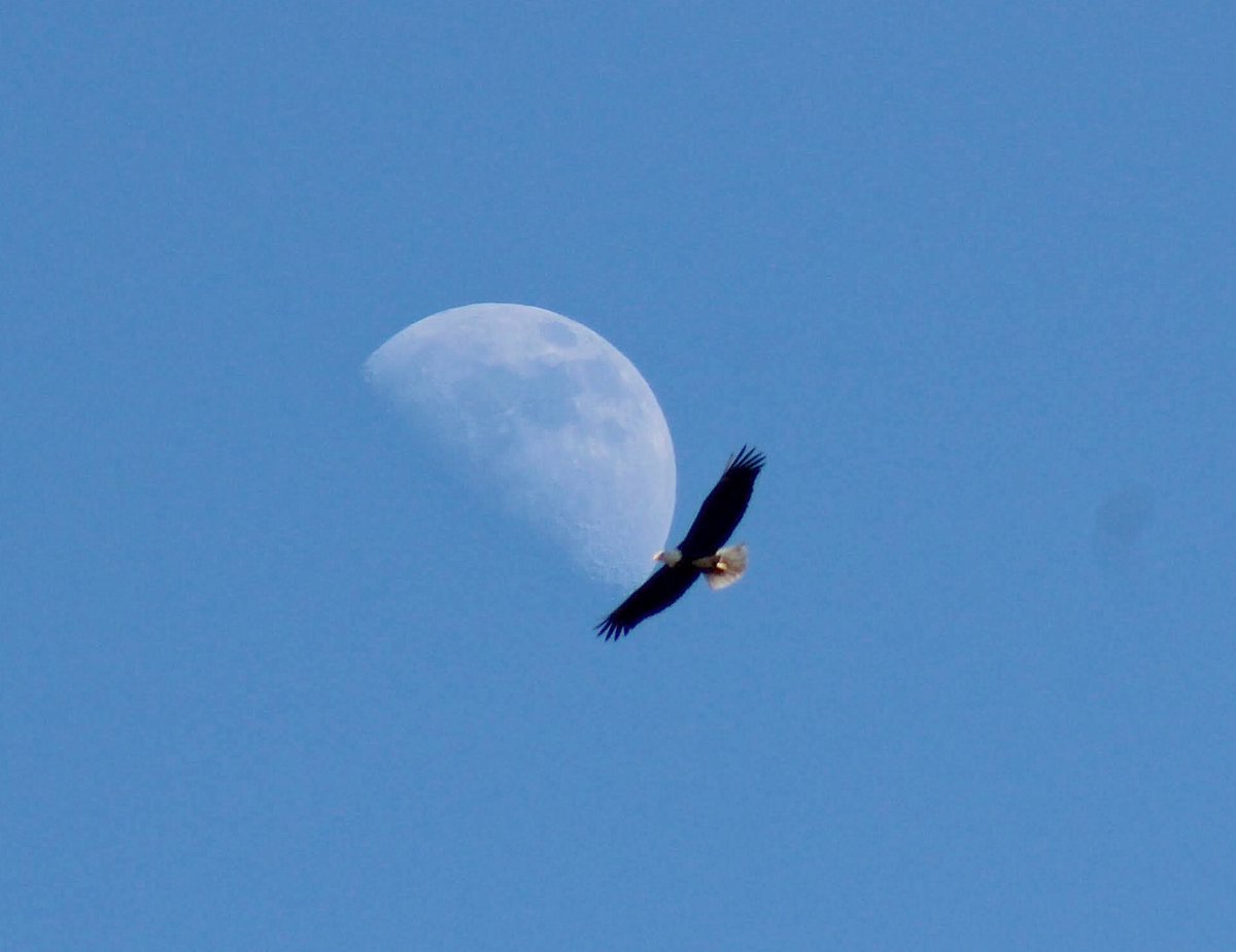#hike. I got this shot!! It’s not great, it’s a bit blurry, but I can’t believe I got the#moon with the#eagle.#photography#Naturephotographypic.twitter.com/CdbAlMIiRi