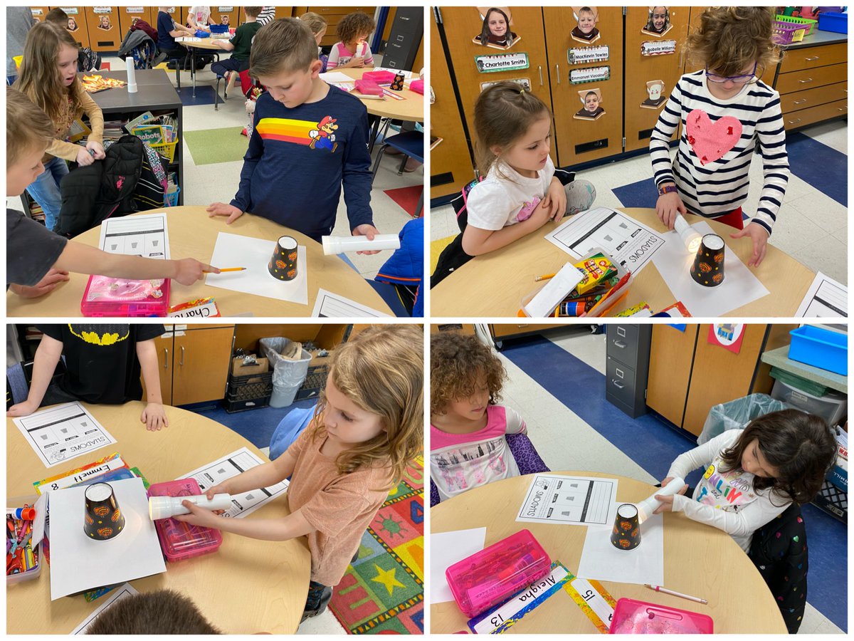 Exploring how objects blocking light create shadows! We learned that shadows appear larger than their object! Now we know why