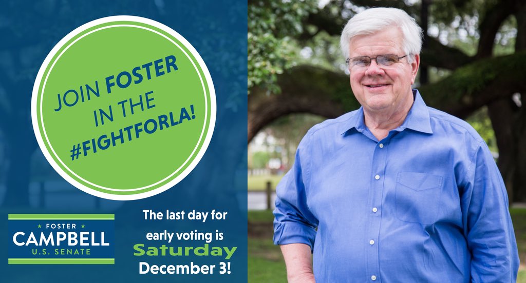 #Louisiana, today is the last day to#EARLYvote . Get out for Foster Campbell! In#NOLA, vote @ Lakeview's Lake Vista Community Center.pic.twitter.com/nYnwz3N50o